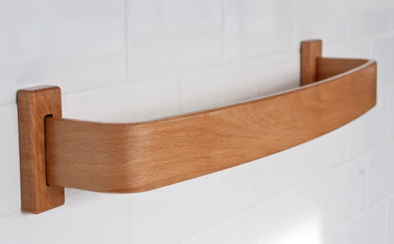 This beautiful Beech Bentwood towel bar can be found on Etsy. Other species available, too.